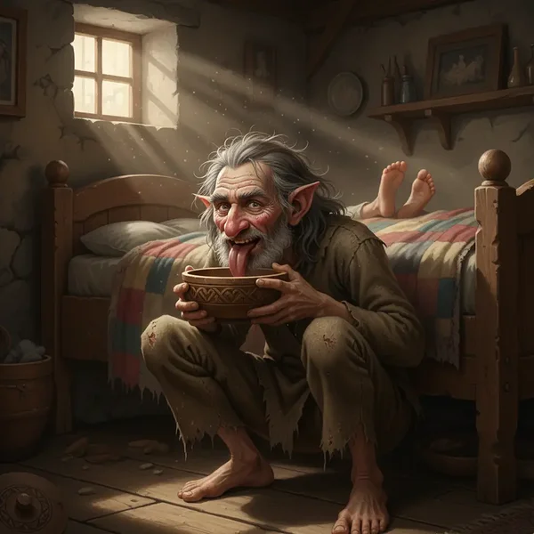 Peidab end uhtorgudes ja kaljulõhedes, oodates võimalust, et hiilida märkamatult lehmalauta piima varastama. Eriti meeldib talle riisuda piimaämbrist koort.