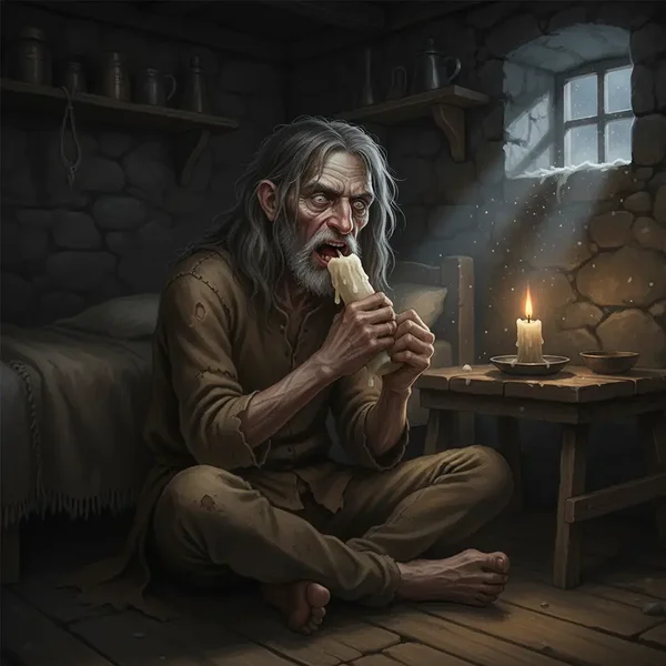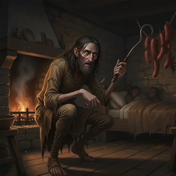 Jälitab lapsi, et neilt küünlaid varastada. Vanasti tehti küünlaid rasvast ja seetõttu olid need söödavad. Niisiis sõi ta küünlad ära. Tegelikult olid vanasti ka küünlad haruldased ja lapsed said neid vaid jõulukingiks. Ja enne elektrit olid küünlad peamiseks valgusallikaks.
